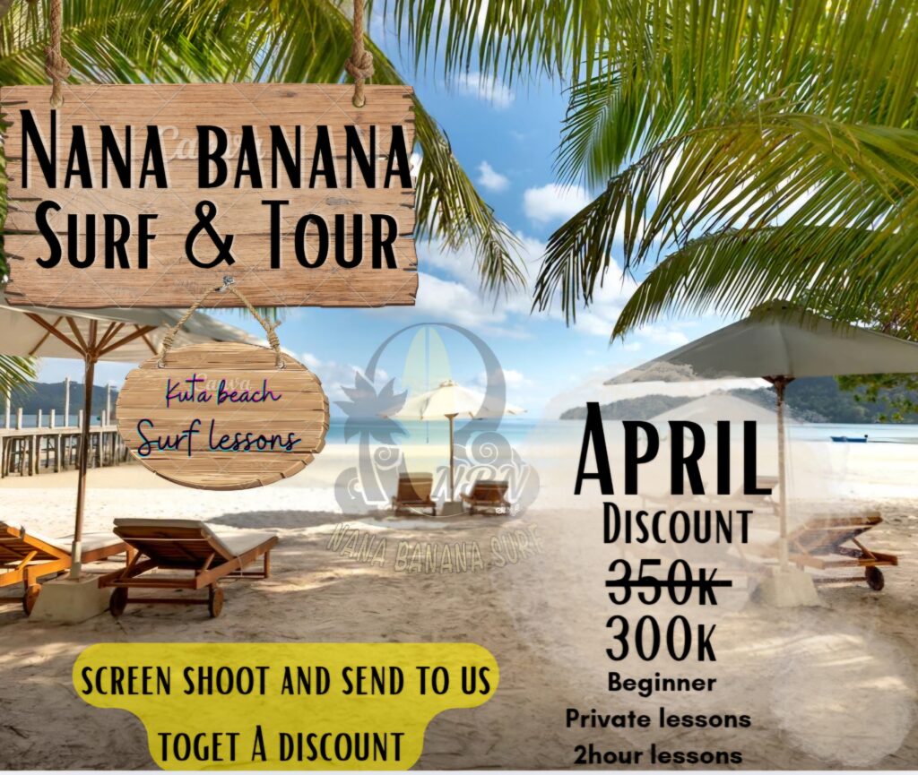 Nana Banana Surf School Bali is located in Kuta Beach, one of the most beautiful beach in the South of Bali. Our warm, welcoming professional native instructors provide surf lessons that gently accessible for all levels, age and ability to ensure safety and quality.